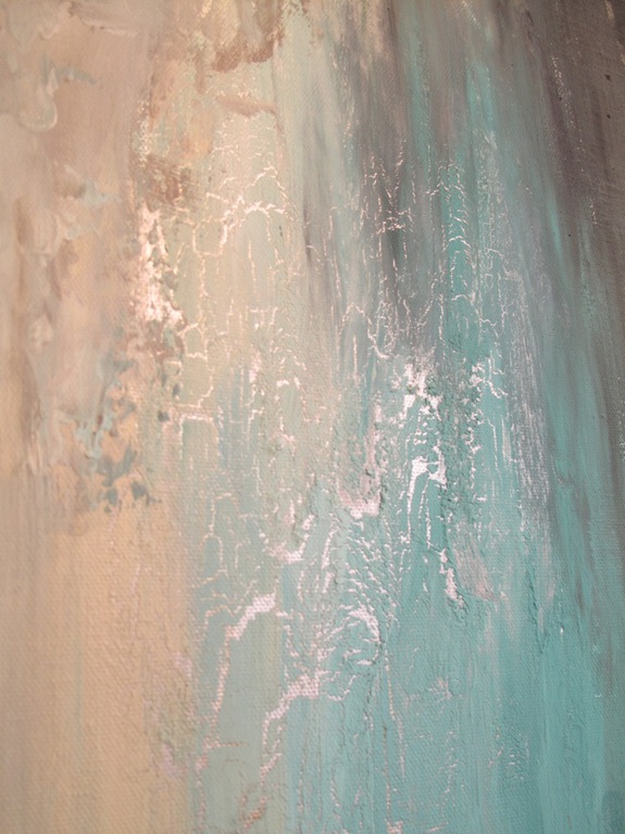 Durch die reflektierende Wirkung von Blattmetallen wirkt Ihr Gemälde zu verschiedenen Tageszeiten je nach Lichteinstrahlung jedes Mal ein wenig anders und wird so nie langweilig. Ob es nun Blattgold, -silber oder z.B. auch Kupfer sein soll, wird individuell auf Ihre räumlichen Gegebenheiten angepasst. So passt z.B. mattiertes Blattgold sehr gut zu geölten Eichendielen oder zu anderen goldfarbigen Dekorationsgegenständen.