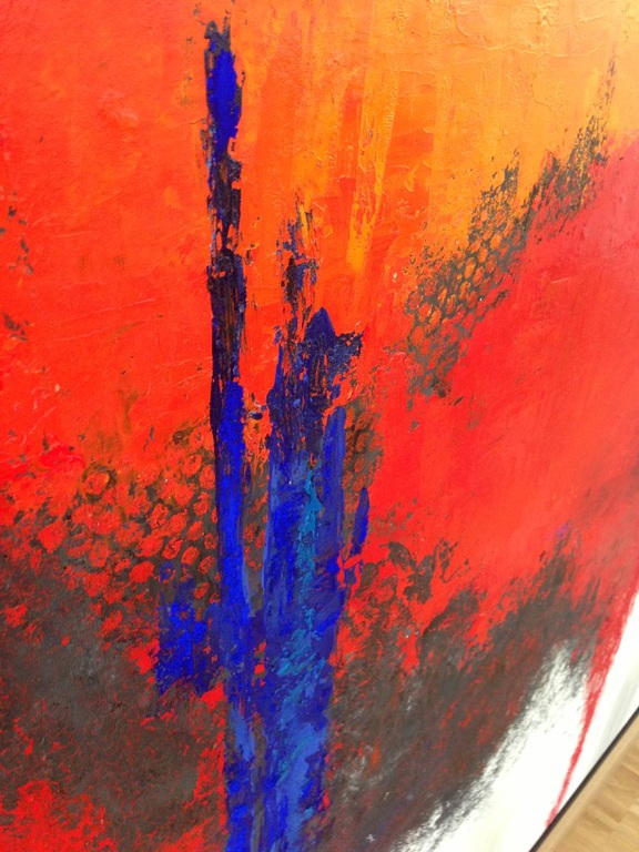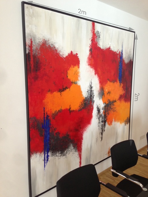 Mit Acryl-Farben können sehr harmonische und dezente Bilder gestaltet werden, während Öl-Farben aufgrund der hohen Pigmentdichte und Materialbeschaffenheit wesentlich knalligere Farbtöne ermöglichen. Die folgenden Fotos zeigen Ausschnitte von Gemälden, auf welchen farbenfrohe und leuchtende Öl-Farben verwendet wurden. Solche Hingucker eignen sich z.B. für sehr schlicht und minimalistisch eingerichtete Büroräume, die häufig mit weißen und schwarzen Möbeln bestückt sind.